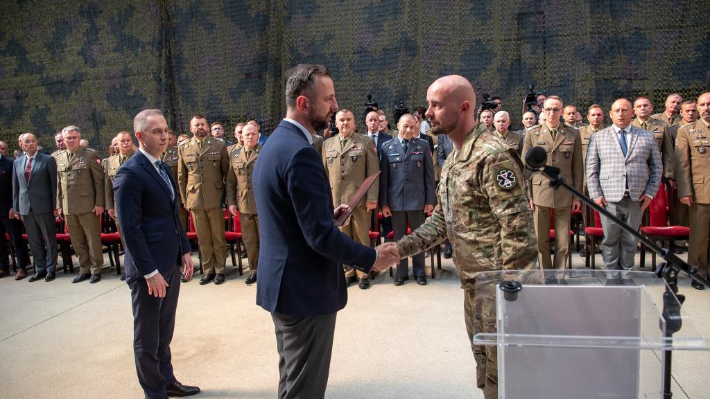 - Jednym z pierwszych zadań, które zostało wyznaczone przez pana ministra, jeżeli chodzi o działania dla nas wszystkich – zarówno dla mnie, jak i dla Sztabu Generalnego – było powstanie wojsk medycznych. Cieszę się, że dzisiaj kończymy jakiś etap i zaczynamy kolejny – właśnie po to, żeby wojska medyczne mogły zacząć funkcjonować, aby razem z ministrem zdrowia, razem z wojewodami, razem z Wojskiem Polskim przygotować państwo polskie na każdy scenariusz, który może się zdarzyć. Mam też tę szczególną przyjemność, że moim szefem jest minister obrony, ale też lekarz. Myślę, że właśnie to zadanie, które było postawione przed nami wszystkimi na samym początku, również wynika z tego, by w samym centrum wszystkiego, o czym mówimy w kontekście wojska – zarówno jeżeli chodzi o wyposażenie żołnierzy, jak i kwestie dotyczące zdrowia – był człowiek. I tak właśnie jest: w centrum jest żołnierz, jego zdrowie i jego zabezpieczenie, sprzęt, w którym walczy. Chcemy, aby zdanie każdego żołnierza miało znaczenie, bo podmiotowość żołnierzy na współczesnym polu walki naprawdę ma ogromne znaczenie - podkreślił sekretarz stanu w MON, Cezary Tomczyk.